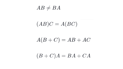 The number of columns in Matrix A must be equal to the number of rows in Matrix B. If using the above matrices B had had only two rows its. Such operations are not commutative and so are referred to as noncommutative operations.
